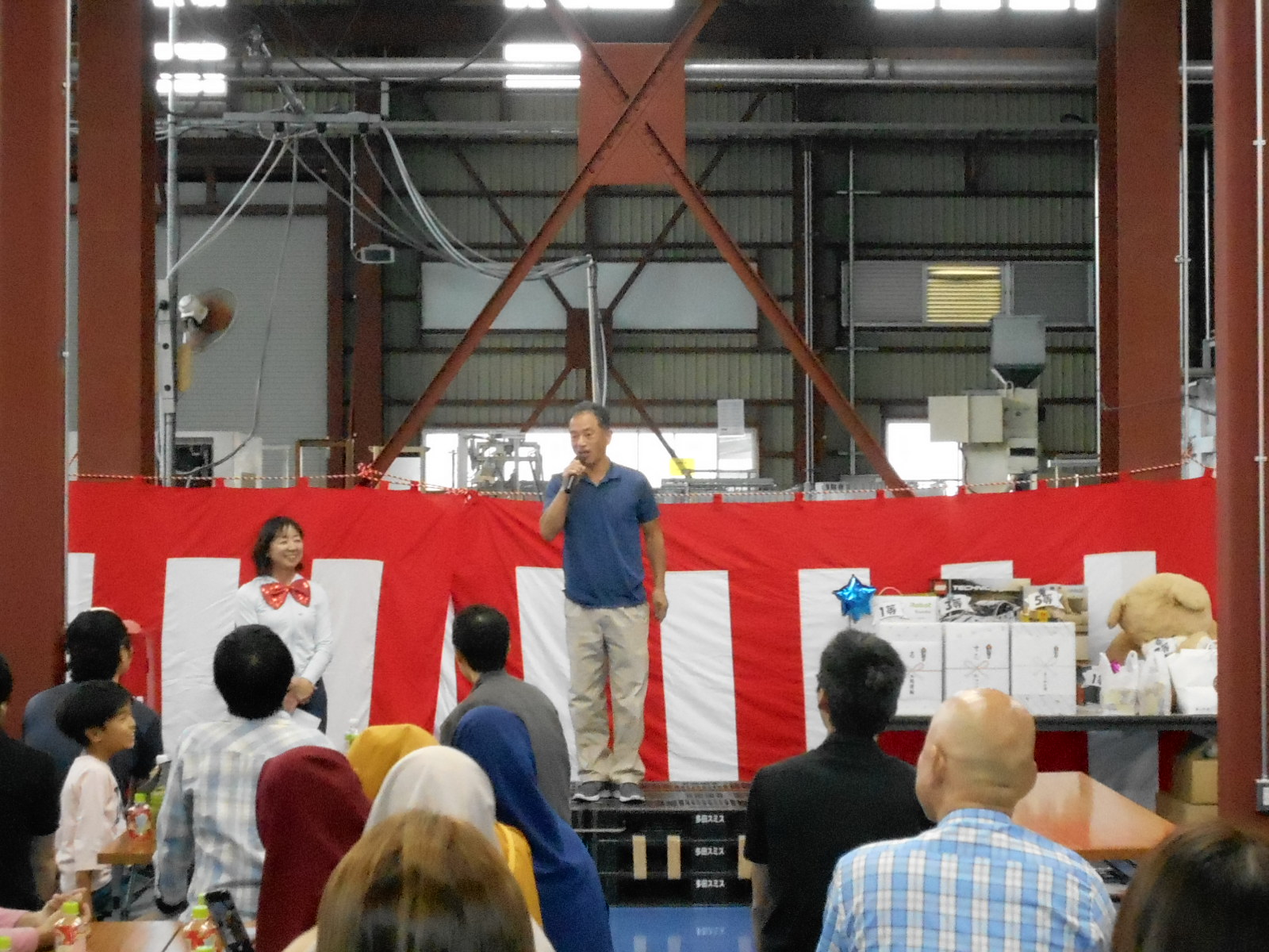 2019.06.14 全社懇親会を開催しました 2019年6月8日ダイカスト第二工場増設建屋で従業員の家族も招待して、全社懇親会を開催しました。当日はあいにくの雨でしたが、バーベキューや○×クイズ、くじ引き、ジャンケン大会と、皆様楽しく過ごしました。